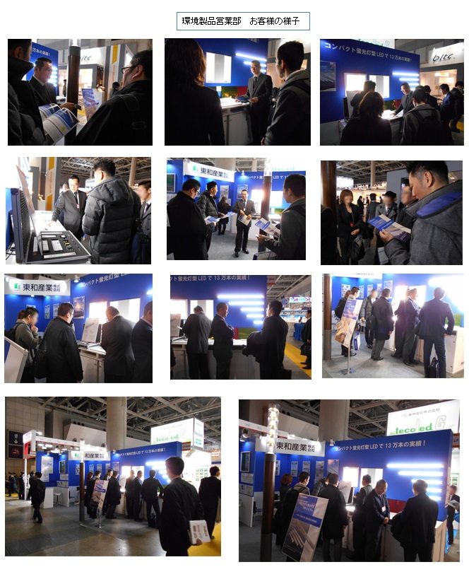 環境製品営業部は5回目の出展です。ブルーカラーで統一した落ちついた雰囲気のブースで、お客様と照明に関する専門的な商談を多々させていただきました。