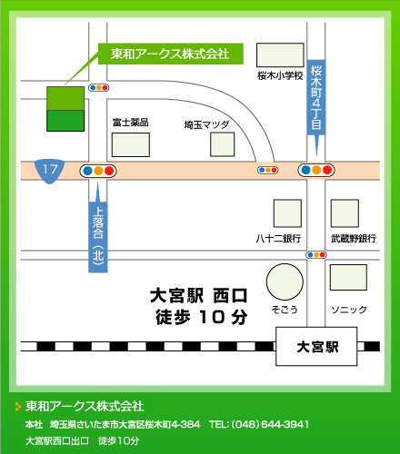 | 本社 | 埼玉県さいたま市大宮区桜木町4-384 <MAP> | TEL:(048)644-3941 FAX:(048)643-1568 |